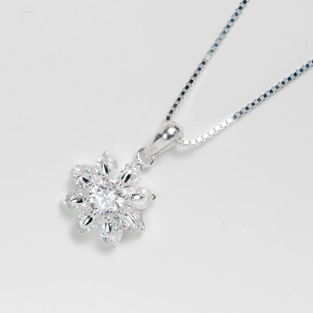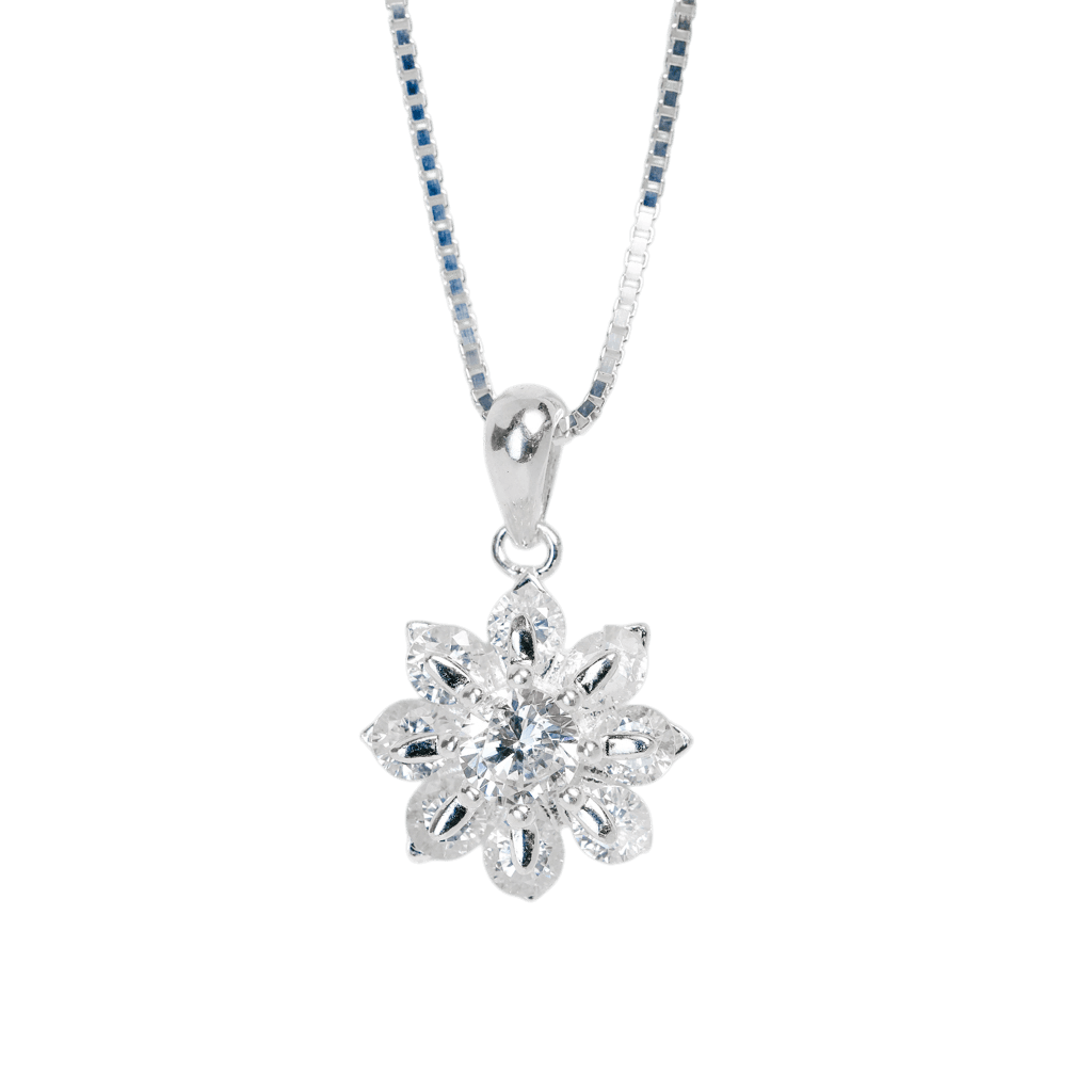 Dây chuyền Bạc KFJ MD đá hoa to xếp 3tầng CT – 2384