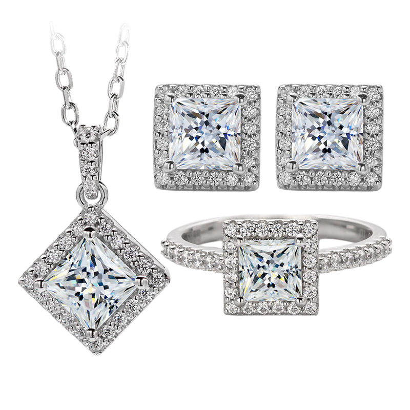 Bộ trang sức bạc S925 Moissanite Cắt Vuông Cao Cấp – K0203