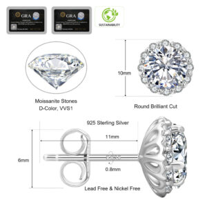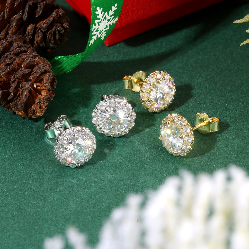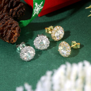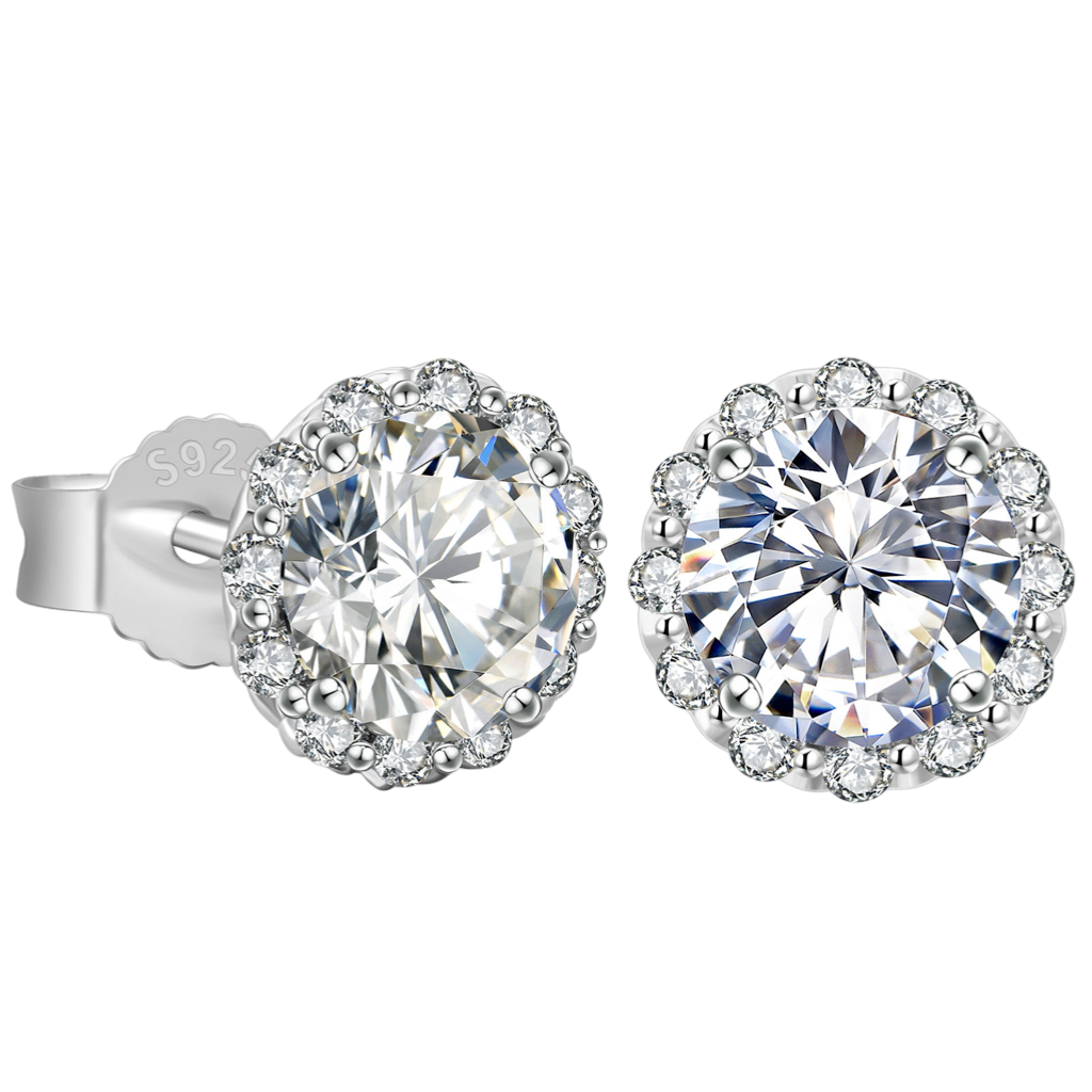 Bông tai bạc S925 đá tròn halo sang trọng ✨ – K0188