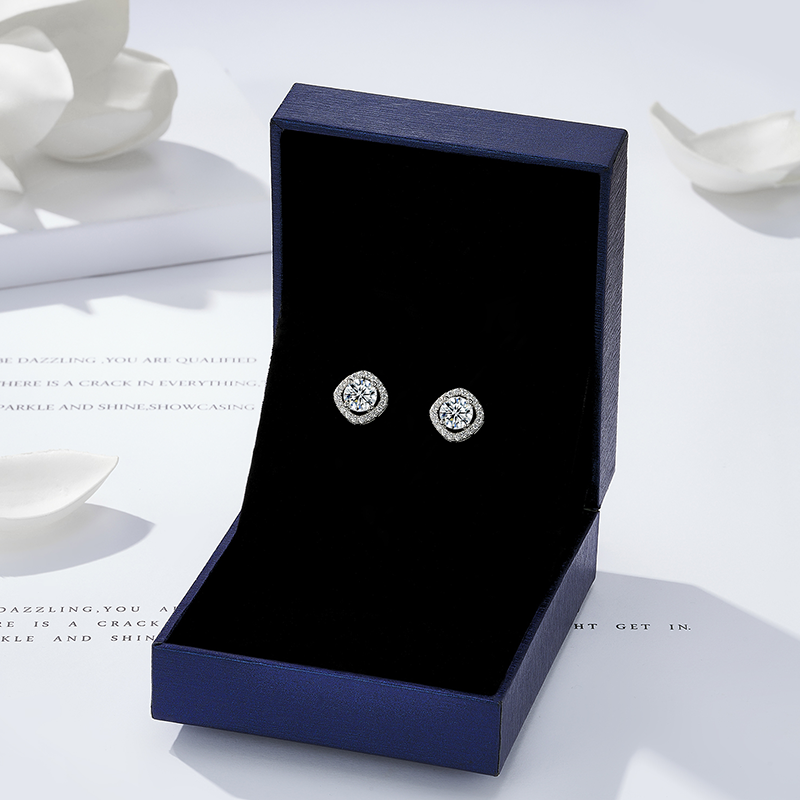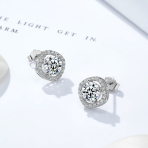 Bông tai bạc S925 đinh tán đá tròn halo zircon – K0089