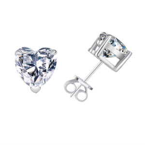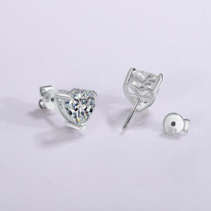 Bông tai bạc S925 moissanite trái tim solitaire 1CT – K0104