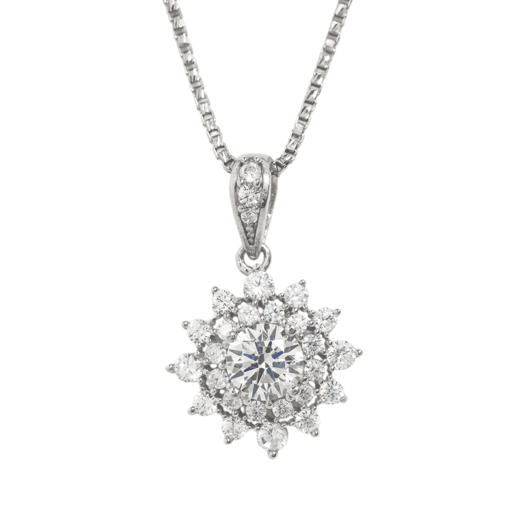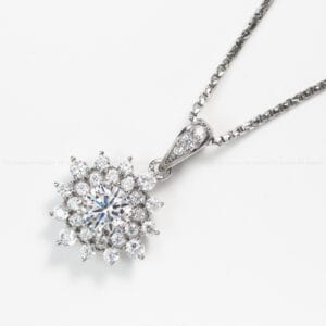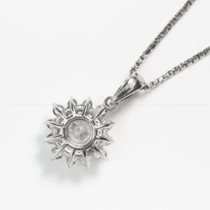 Dây chuyền bạc lụa mặt đá cao bốn chấu bế tỏa hoa – 3557