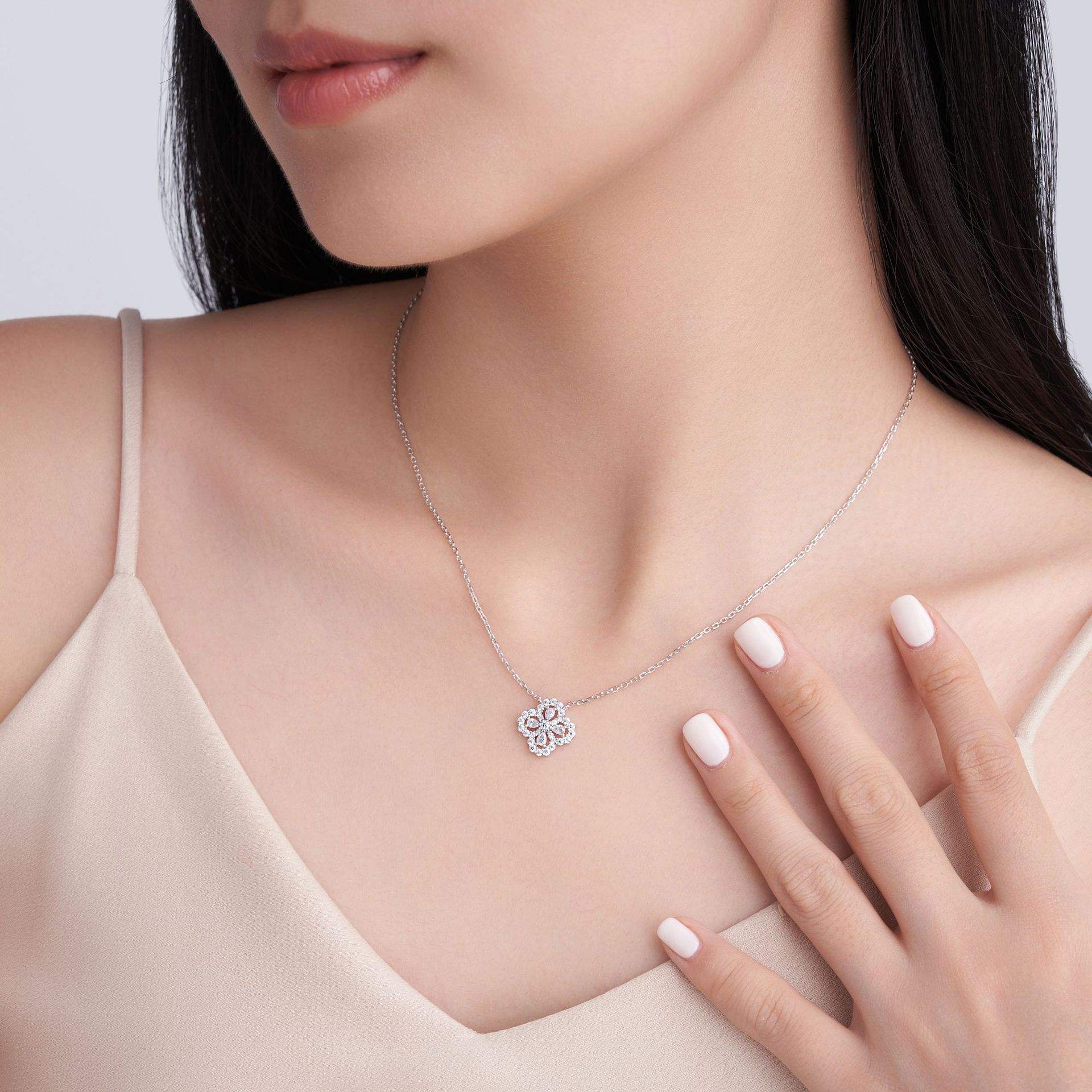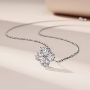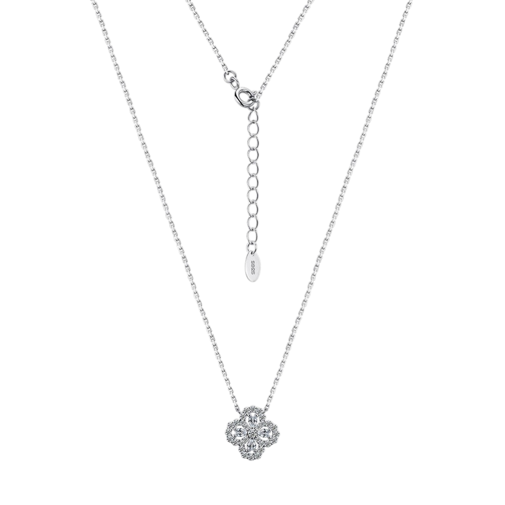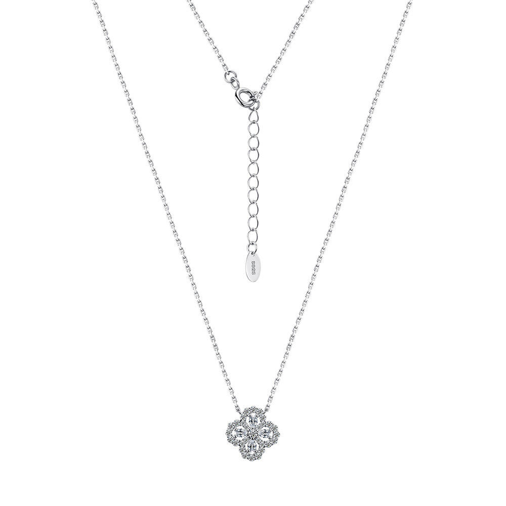 Dây chuyền bạc S925 cỏ 4 lá đính moissanite – K0112
