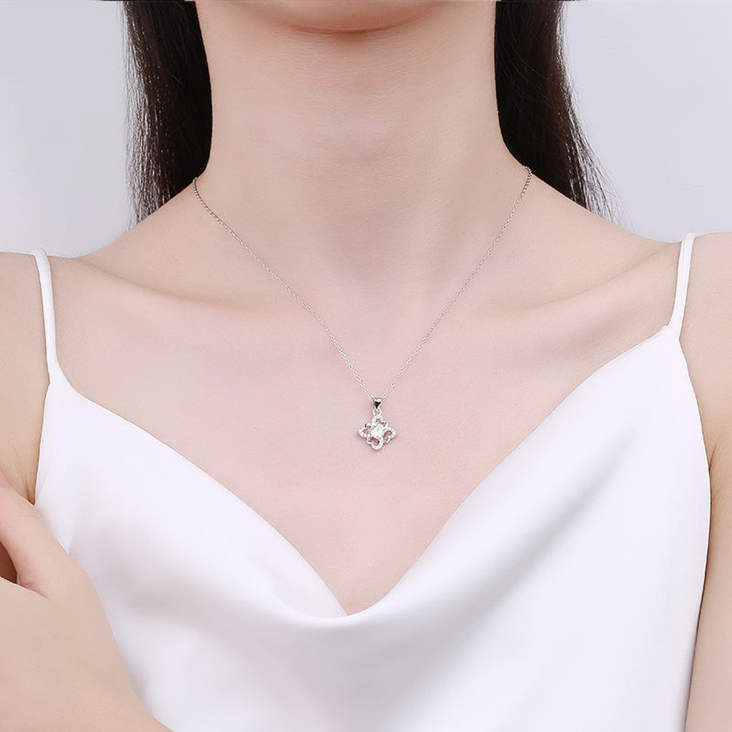 Dây chuyền bạc S925 cỏ bốn lá đính đá zircon – K0154