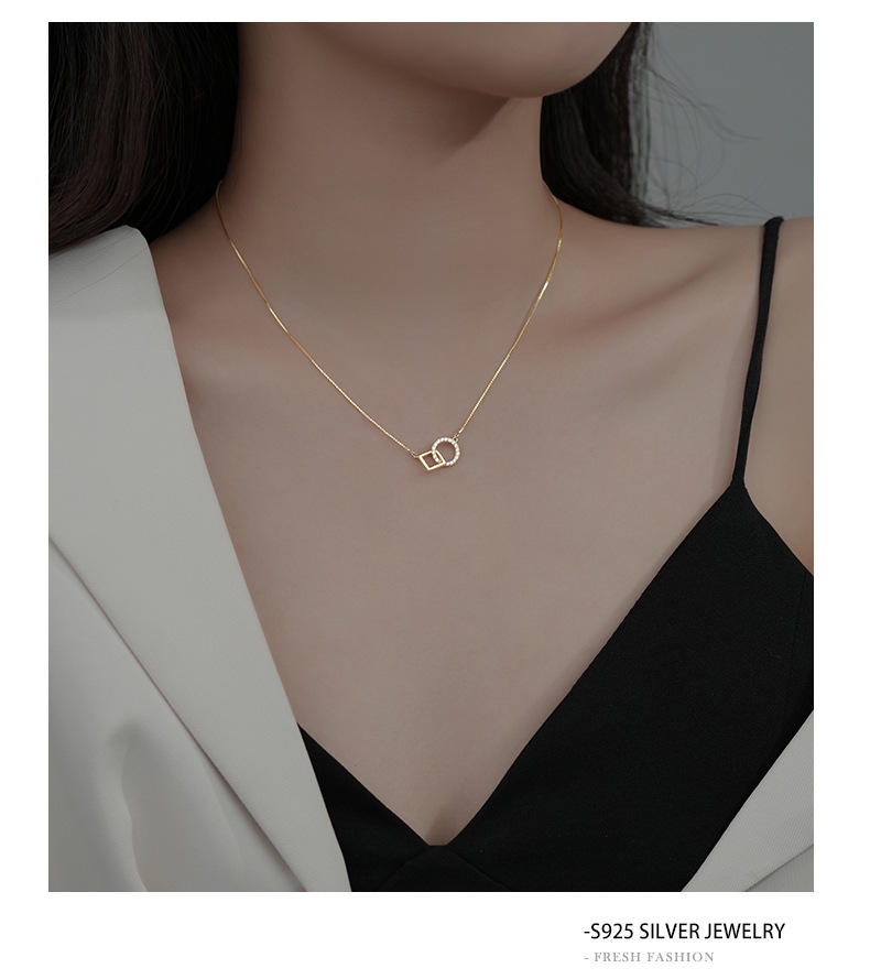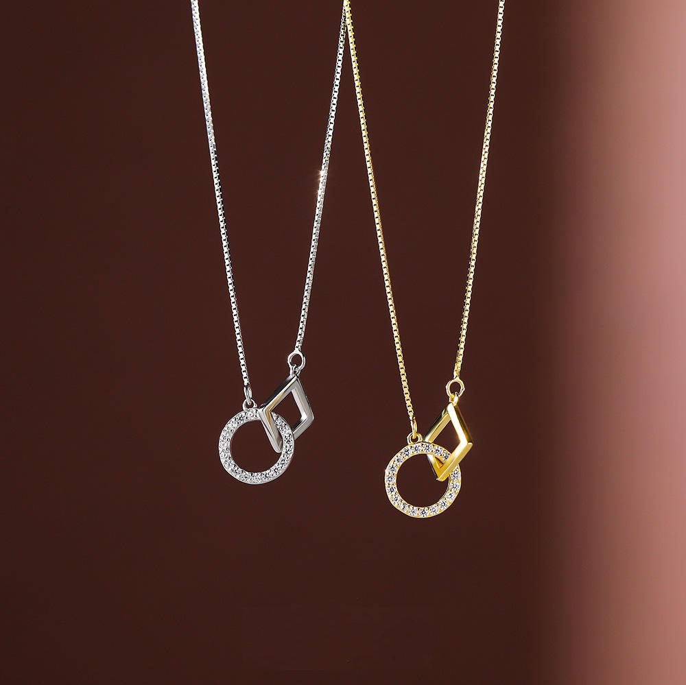 Dây chuyền bạc S925 mặt tròn vuông thanh lịch – K0080