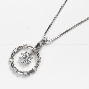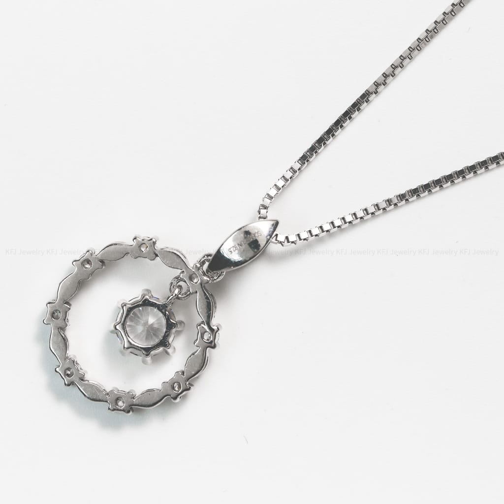 Dây chuyền bạc xích O mặt lá xếp viền tròn kết hợp đá – 3554