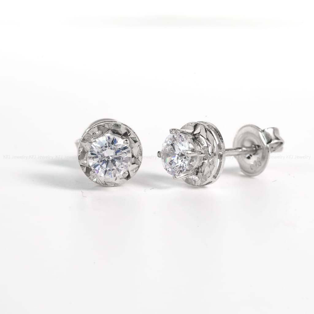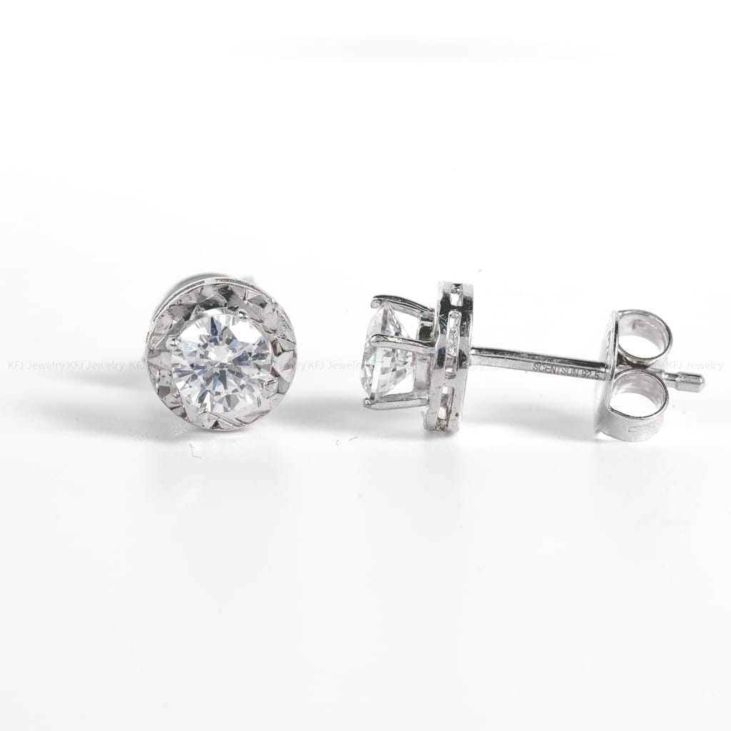 Bông tai bạc s925 đá tròn nổi sang trọng – 2302