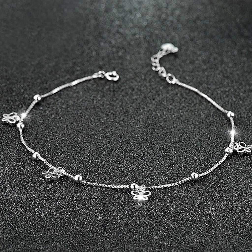 Lắc chân bạc S925 charm bướm có chuông – K0117
