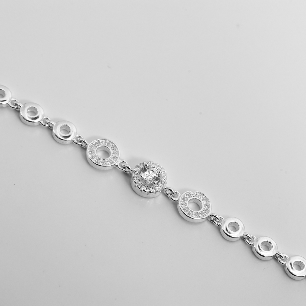 Lắc tay bạc họa tiết tròn đính đá – 248