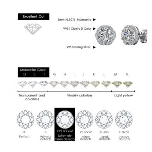 Bông tai bạc S925 đính moissanite tròn 💎 – K0012