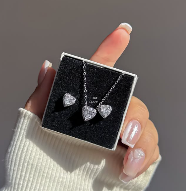 Bộ trang sức bạc S925 trái tim đính zircon – K0002