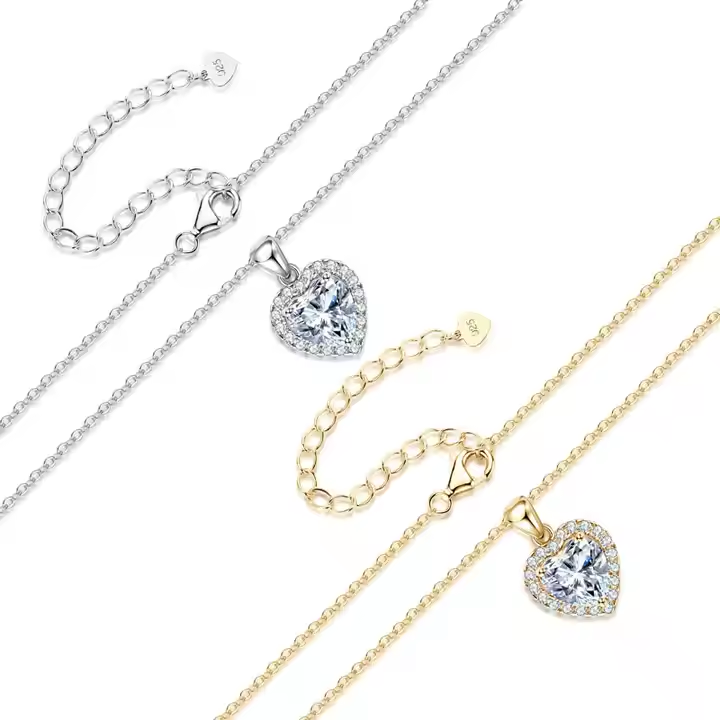 Dây chuyền bạc S925 moissanite trái tim 1CT – K0052